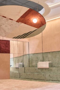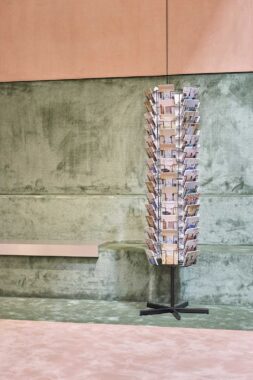 L’intero allestimento è progettato per essere vissuto in maniera informale e libera, lavorando con una scala architettonica dai colori pieni e puliti.